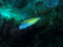 別名Fourline Wrasse。身体全体が濃い青で水色の縦ラインが入って